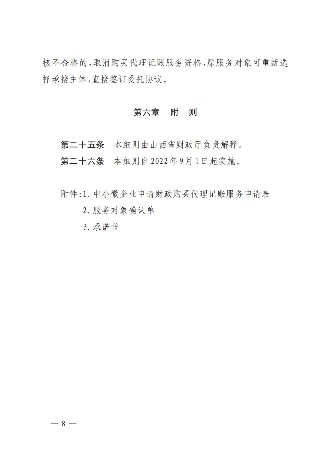 關(guān)于印發(fā)《山西省財(cái)政廳為中小微企業(yè)購(gòu)買代理記賬服務(wù)實(shí)施細(xì)則(試行)》的通知